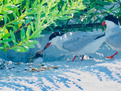 We counted 5 beautiful Common Tern fledglings generally by the water with a parent close by.