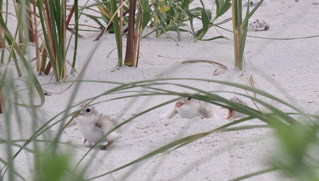 Common Tern chicks can be seen on top of the dunes ocean (east) side and on the inlet (west) side. We have about 4 Common Tern nests throughout the posting and we have seen just a couple of chicks.